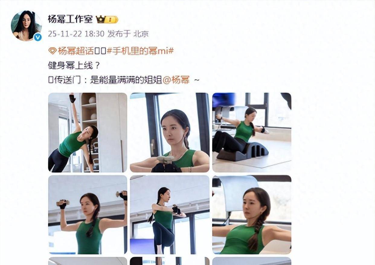 11月22号,杨幂工作室在她的个人社交平台上晒了一组boss级别的健身美照。