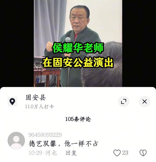 虽说不上电视了,但侯耀华还在网上活跃,在抖音发发视频、搞搞直播,有时还跑跑商演。