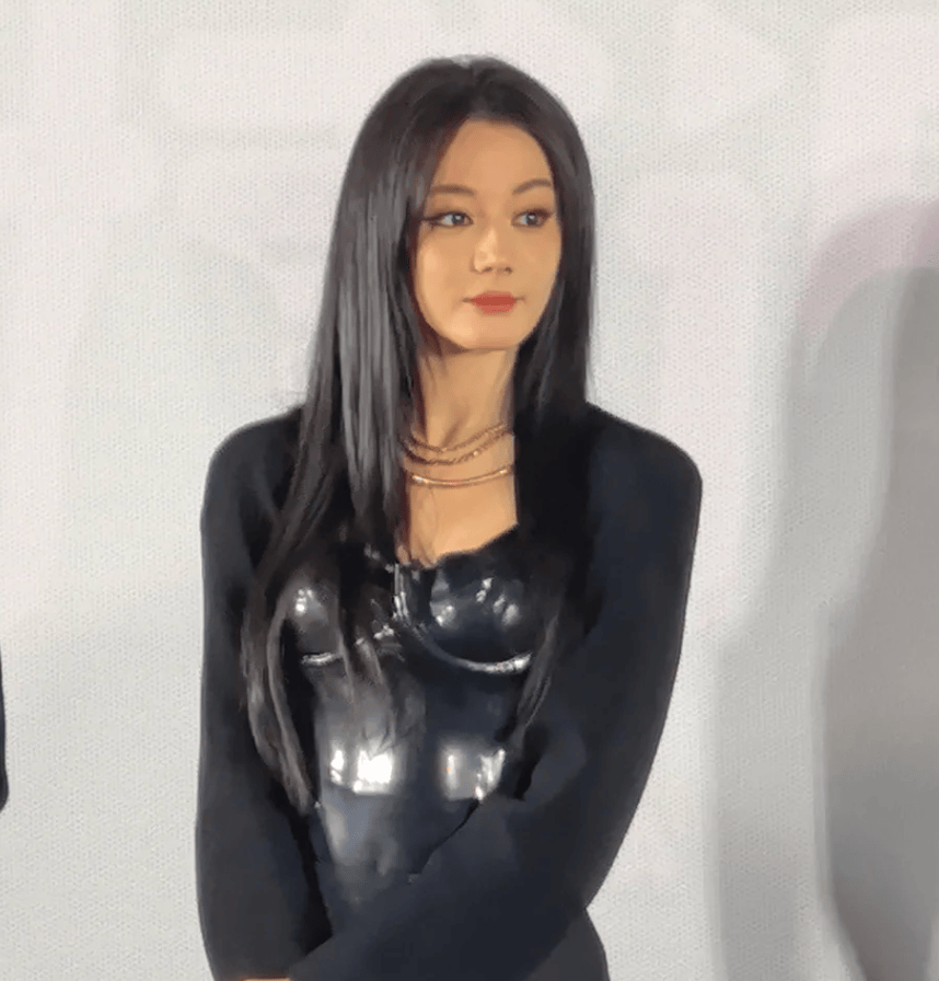 从现场曝光的照片中可以看到,热巴为了配合角色人设特意选择了酷飒风格的穿搭。只见她身穿黑色长袖外衫内搭黑色皮质抹胸打底,下身搭配不对称拼接牛仔半身裙和黑色长靴。为了配合一身干练飒爽的穿搭,她并没有做什么复杂的发型,只是将长发拉直。
