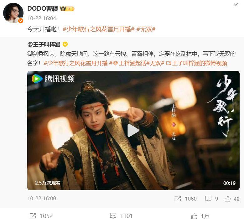 这部剧开播的时候,曹颖在社交账号转发,大家才知道,王子涵出演这部剧,如果曹颖不帮忙宣传,再加上这部剧热度较低,真的很难被发现。