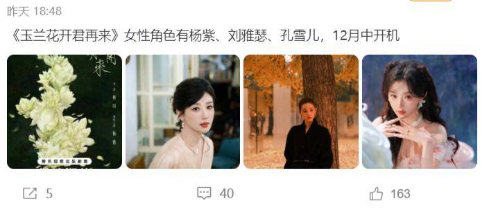 《玉兰花开君再来》官宣杨紫主演后,始终没有宣布其他演员,网友们都非常好奇。近日,网上传出这部剧的主演阵容,让大家没想到的是,实力派“影后”,将在《玉兰花开君再来