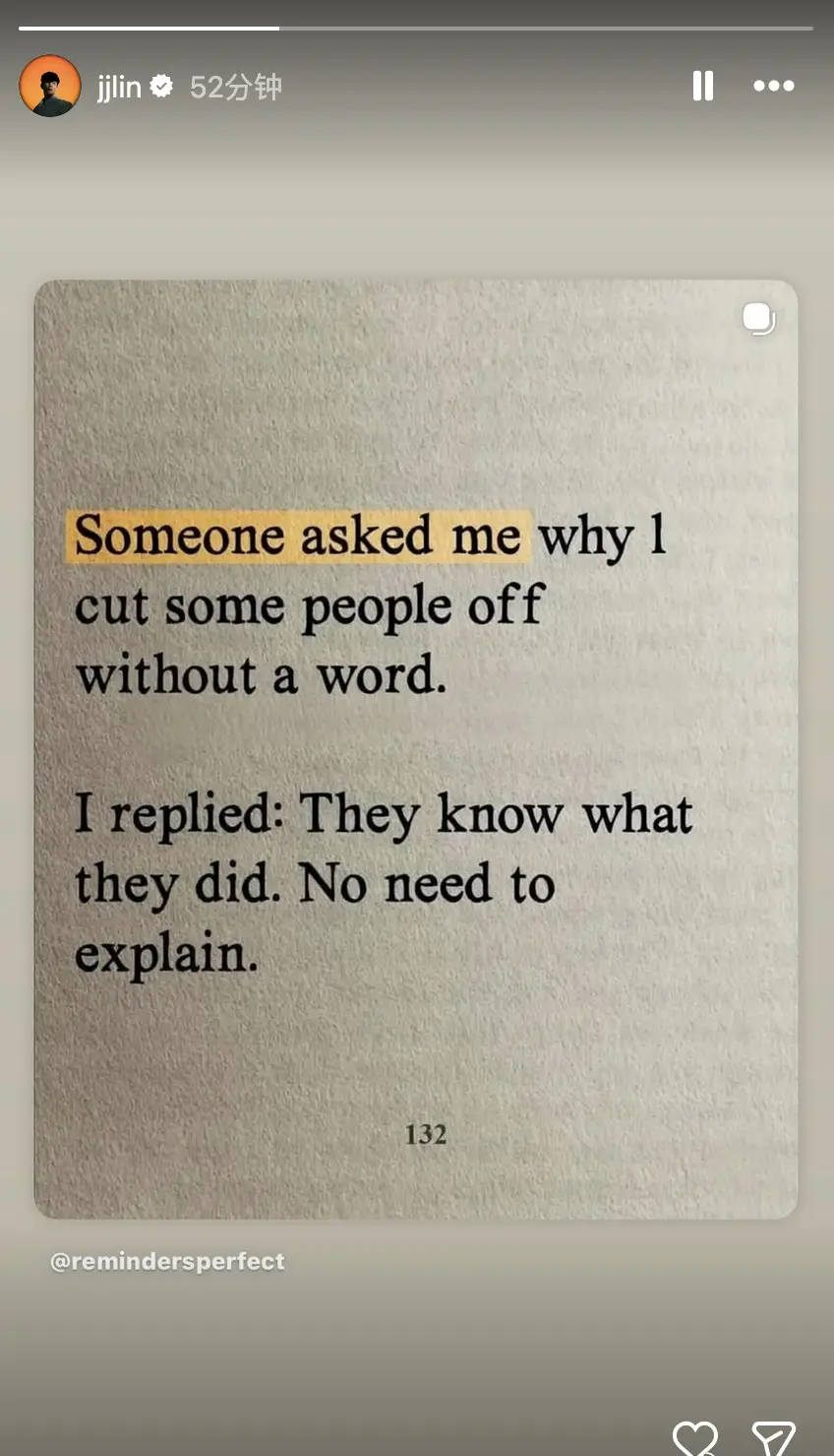近日,有网友在洛杉矶偶遇44岁林俊杰与一女生出行,网传女方为23岁网红“七七”,引发热议。25日,林俊杰更新快拍,配图上写着:“有人问我为何悄无声息地与某些人断绝来往。我答道:他们心知肚明,无需多言。” 随后又在评论补充:“耐心… ”不少网友猜测林俊杰疑似在回应恋情。