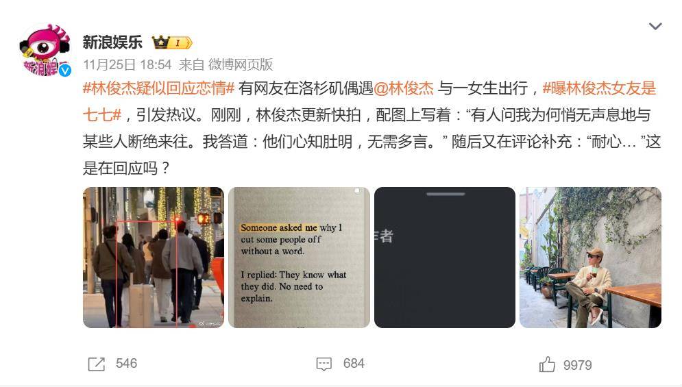 不过,这段恋情也引发部分粉丝的质疑。有人指出七七的美籍华裔背景与艺术名媛形象,与林俊杰过去偏好的“邻家女孩型”差距甚大,直呼“人设矛盾”。而11月25日洛杉矶同框照曝光后,林俊杰发文称“与某些人断绝来往…他们心知肚明”,并写下“耐心…”,被部分粉丝视为“默认恋情并呼吁隐私”,但也有人批评回应模糊,“既不承认也不否认”。