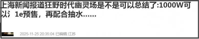 上海电视台针对《狂野时代》票房怪相进行了深度报道,记者根据线上售出情况依次探访了深夜场和早晨场,发现上海多家影院的《狂野时代》出现了“幽灵场”,不仅电影院放映厅不播电影,座位上也空无一人,甚至连灯都没有开。