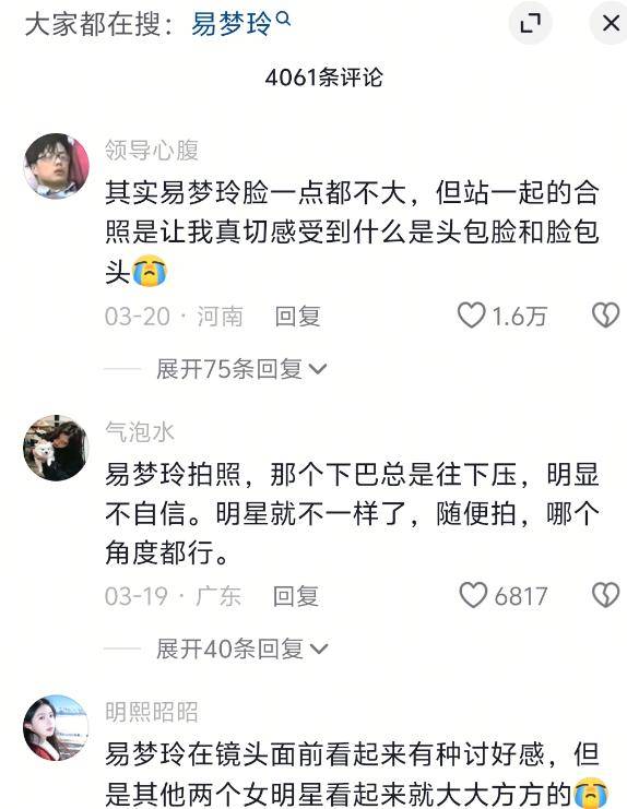 但易梦玲这大半年时间并没有闲着,网友吐槽她的地方都在改,不知是采用了医美手段,还是矫正了仪态,在新戏的开机仪式上,她的头脸比和女星李一桐比起来也不输了。