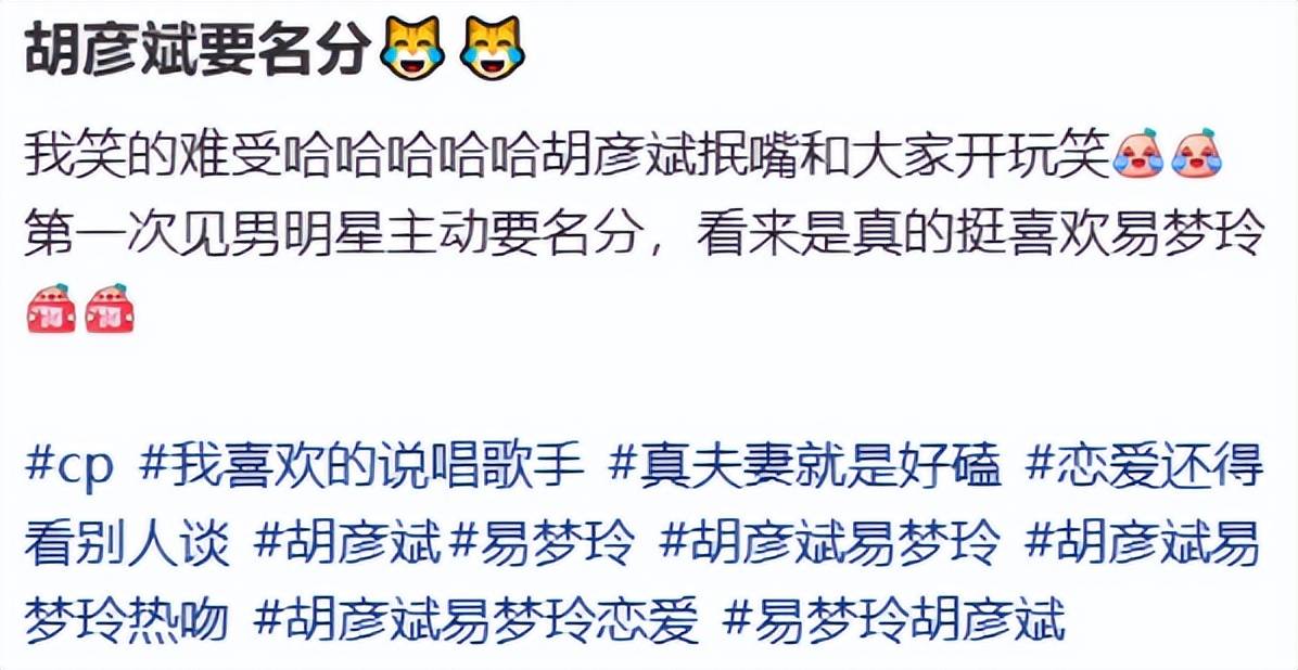 易梦玲、胡彦斌的恋情曝光之后,一开始遭到了不少网友的讽刺。觉得她只是个做作的网红,根本配不上胡彦斌。但没想到恋情风波发酵后,却是胡彦斌主动力挺她,主动向路人澄清打假恋