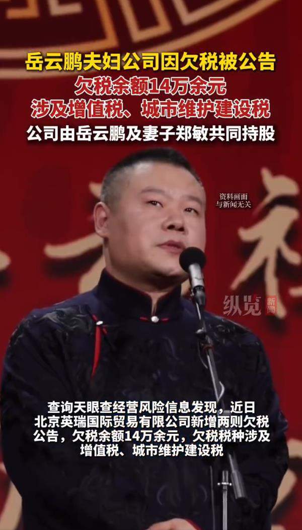 一纸欠税公告,让相声顶流岳云鹏和他的家族企业猝不及防地站上了风口浪尖。