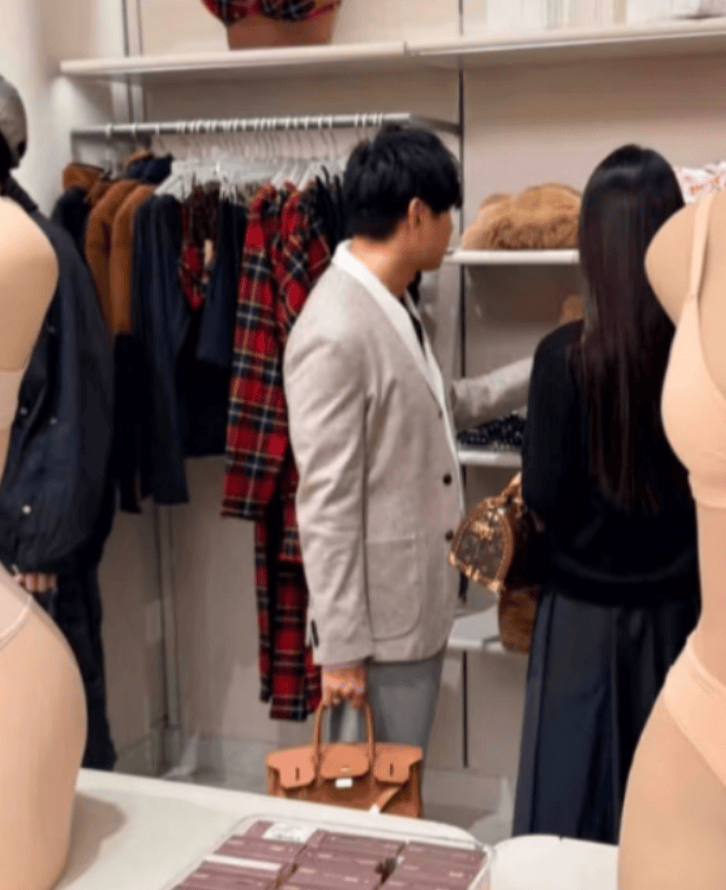次日,林俊杰又带着绯闻女友出街购物了,偶遇的美国网友又晒了同框照片。从照片背景来看,这是一家集成店,包含内衣、外套等物品,林俊杰与一位长发女士正在挑选商品,两人的站姿很亲密,林俊杰手里还提了一个铂金包,十分贴心。
