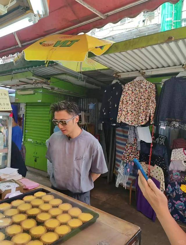 他手背后弯着腰,眯着眼挑特价8毛一个的蛋挞,看起来老态龙钟的,哪还有点天王风范?