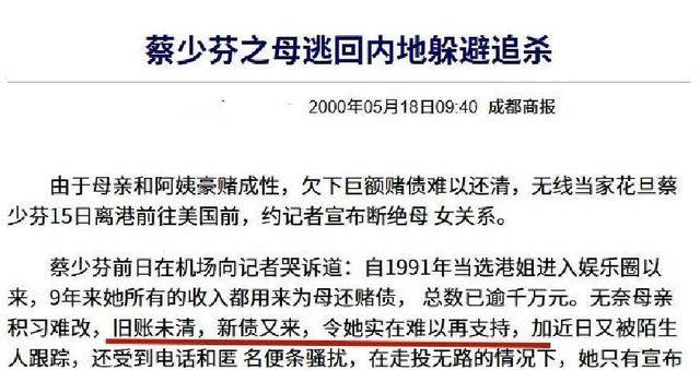 不断帮母亲还赌债,可蔡母不仅不体贴女儿的辛苦,反而变本加厉了起来,接二连三的欠下赌债,蔡少芬被折磨的苦不堪言,甚至已经严重影响了她的生活。