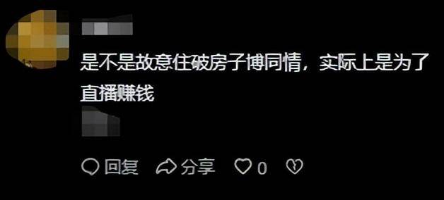 有网友就质疑:“是不是故意住破房子博同情,实际上是为了直播赚钱?”