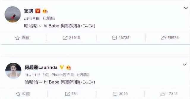 果不其然,下午两人就大大方方的公布了恋情,并且在微博上配文“哈哈哈~hi babe 狗粮狗粮”!