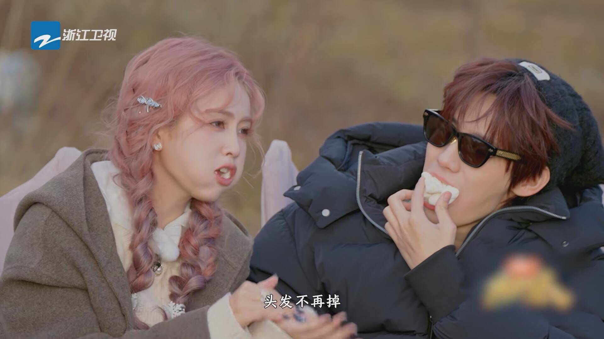 节目组直接放出一个四宫格,那就是白鹿各种咀嚼,可以说是从头到尾就没有停止过。