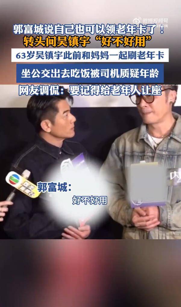 这可把围观网友给看乐了。一边是刚开完高强度演唱会、官宣三胎喜讯不久的郭富城,另一边是因“冻龄”被怀疑证件造假的吴镇宇,两人同台聊老年卡,画面着实有些“违和”。网友们纷纷开启调侃模式:“这哪是老年人,生理年龄也就40岁吧!”“以后在公交车上看到郭富城,记得给他让座!”