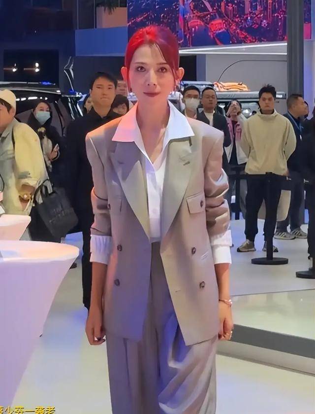 为了挣钱,蔡少芬又去参加广州车展,然而,瘦弱的身体撑不起宽大的西服,显得整个人更加干瘦。