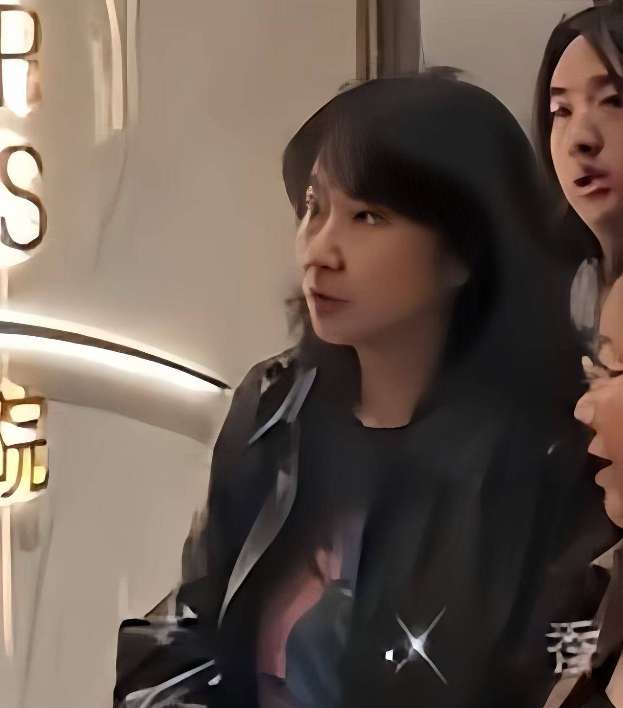 54岁的她穿一身黑色皮衣套装,一头短发看着利落,虽然脸上有了比较多的细纹,但气质超好,站在人群里一眼就能看到。