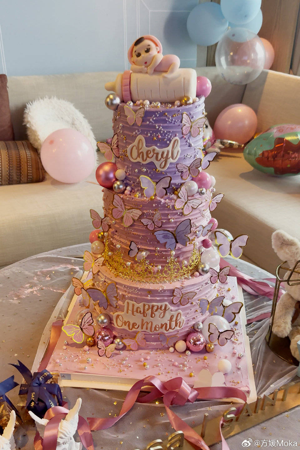 抱着孩子的方媛身材恢复的和以前是一模一样的,郭富城带着两个女儿站在阳台开起了演唱会,这样的生活氛围比大多数人都要好,三胎女儿的满月还定了三层大蛋糕,上面还有个小奶瓶的设计,太可爱了。