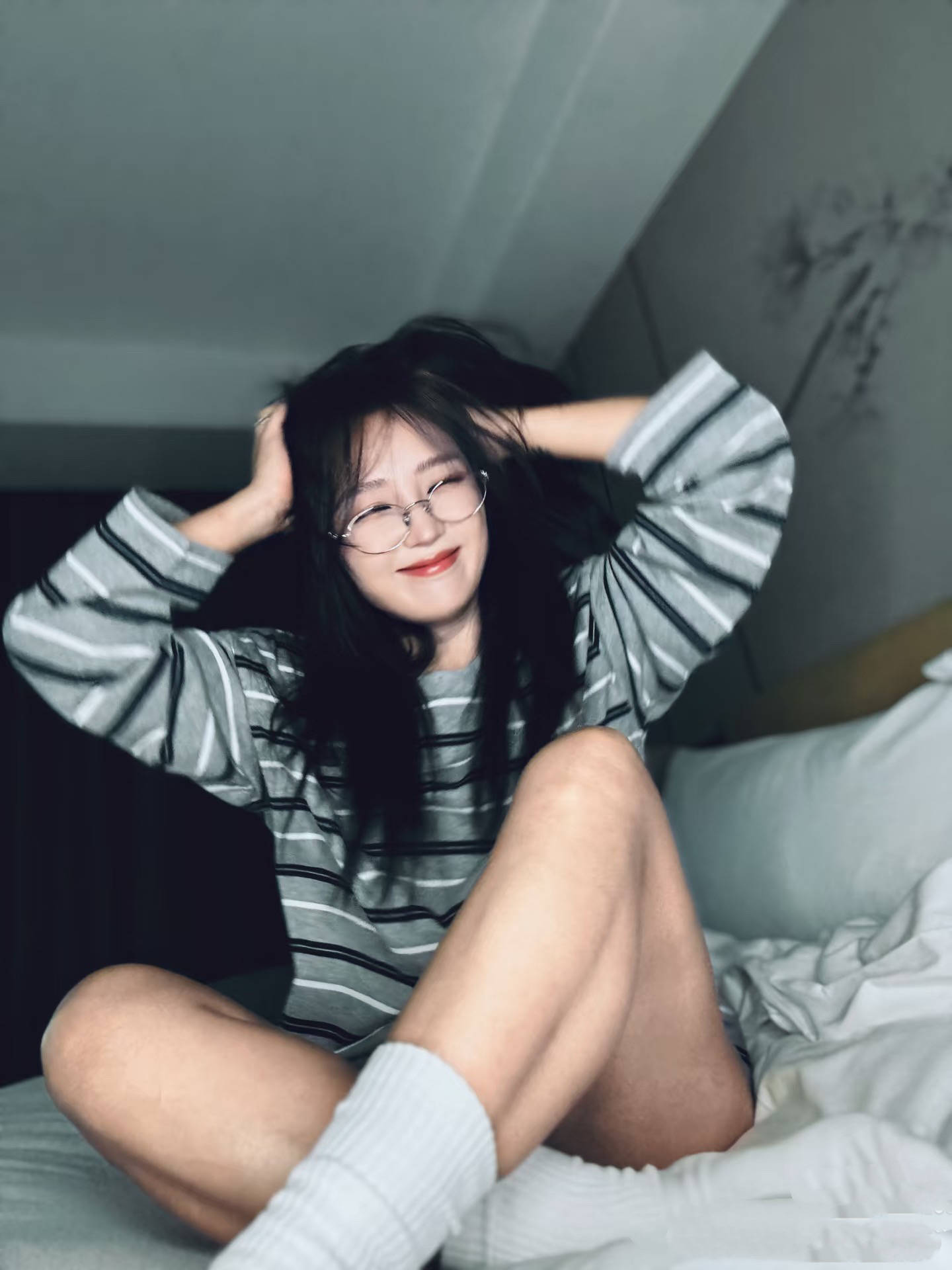现在的何洁,比较细化休闲风的打扮。条纹款的T恤、白色的运动袜。这样下衣失踪的穿着秀出结实的美腿,给人一种健康向上的美。