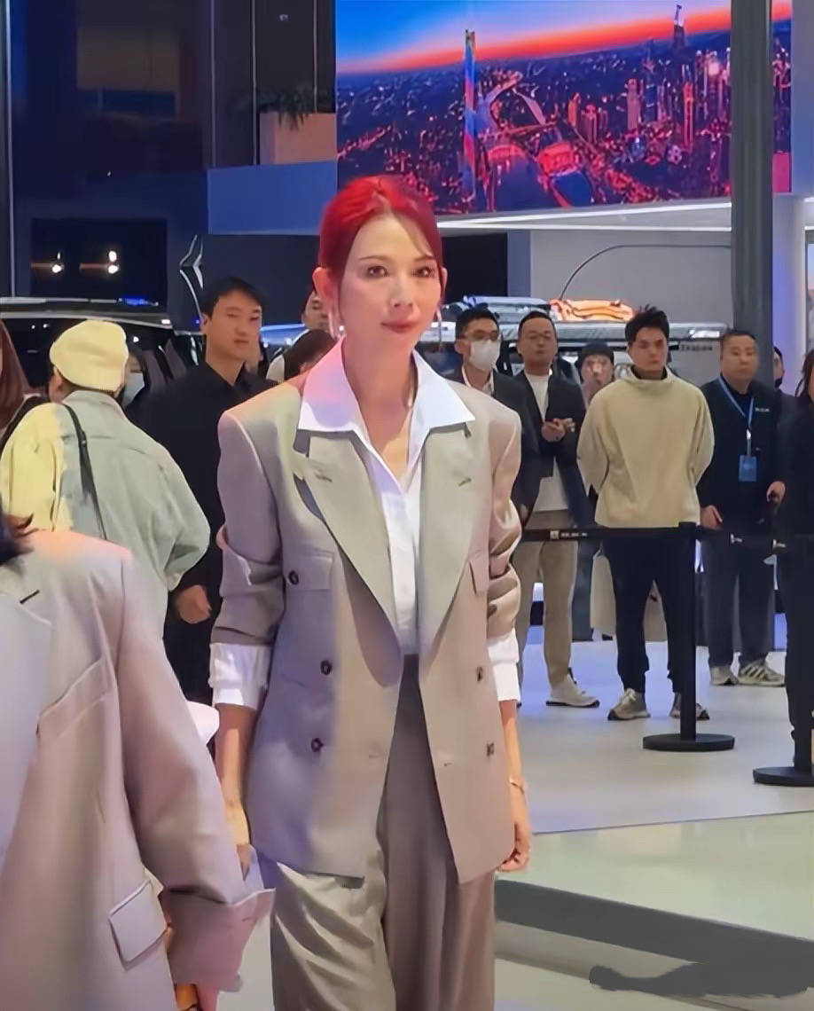 11月21日,在广州车展上看到了53岁的蔡少芬。他穿一身浅棕色西服套装,宽松的版型显得她身形更加纤薄,远远地有一种“瘦成竹竿”的感觉。