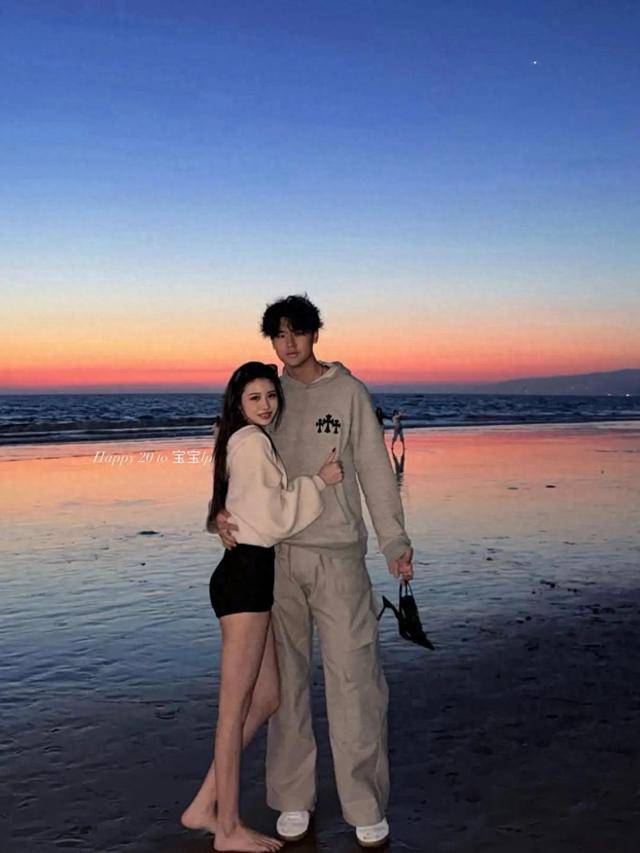 11月25日她20岁生日,直接甩出一组海边照片,跟一个高个子男生亲密拥抱,男生一手搂她腰一手给她提高跟鞋,这细节也太甜了吧。