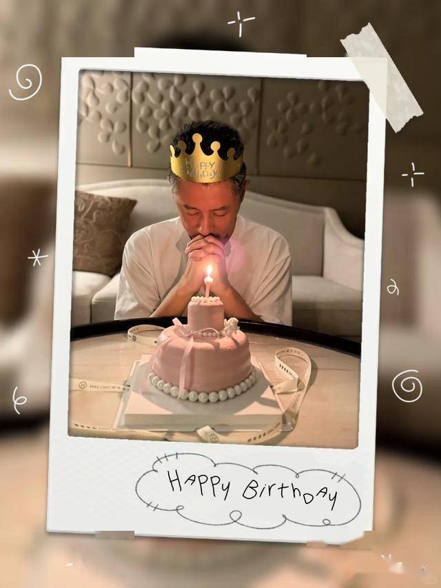 点开照片一看,46岁的他穿着简单的白色T恤,双手合十对着蛋糕许愿,烛光把他眼角的皱纹照得清清楚楚。