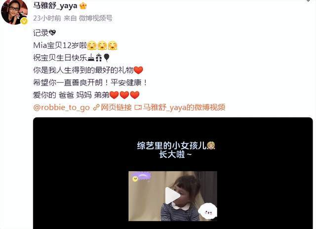 如今距离节目播出已经过去8年,而在马雅舒最新动态中,她久违晒出一段关于女儿米雅的视频,对于迎来12岁生日的女儿,马雅舒在文中写道:“祝宝贝生日快乐,你是我人生得到的最好的礼物,希望你一直善良开朗!平安健康。”一字一言中尽显对女儿满满宠溺。