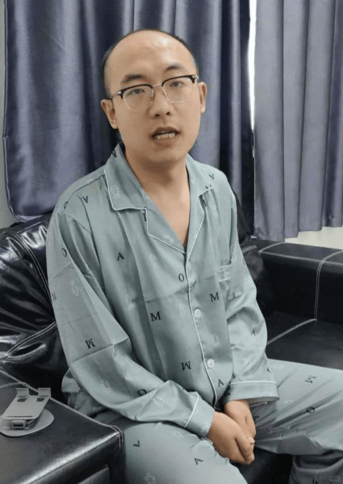随后,有网友晒出了相关最新照片,疑似李怡亨的男子,身穿睡衣坐在室内,头发已经被剃光了,跟今年初演员王星被诈骗后救出的照片相似,也是被剃光了头发。