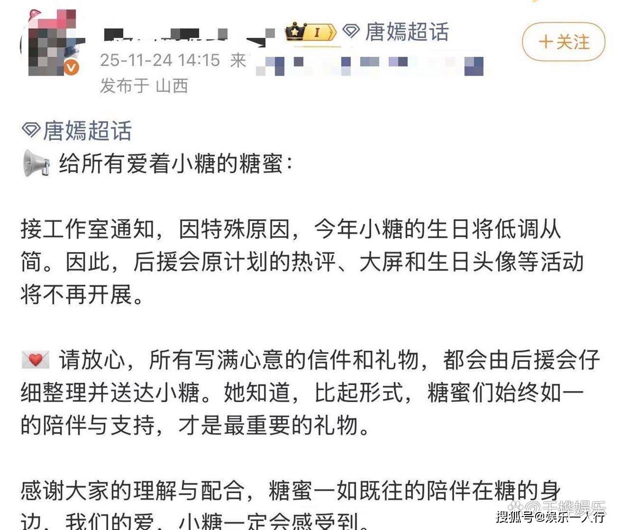 唐嫣一个决定让全网闭嘴,原来我们都被骗了。就在昨天,唐嫣后援会突然发布通知,宣布原定12月6日的所有生日庆祝活动全部取消。这份简短公告里只提了“特殊原因”四个