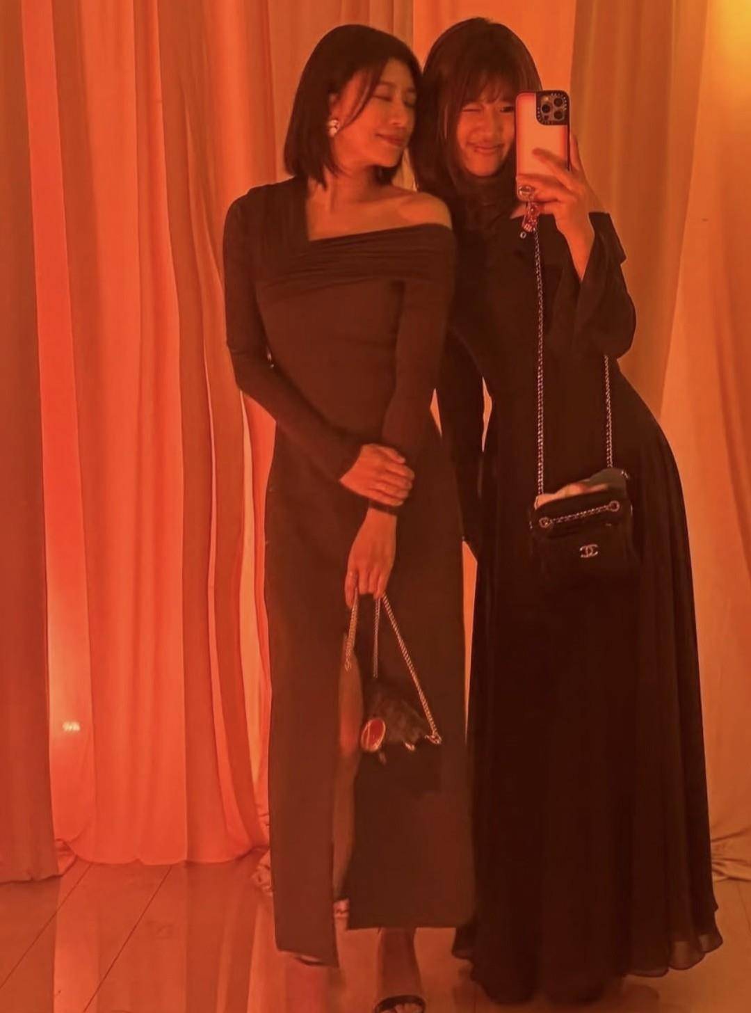 近日,梧桐妹发了一组和家人参加婚礼的日常照,贾静雯在旁边陪着女儿一起出镜。母女俩的发型挺像,身高几乎一致,看着俩人就像同龄人一样。