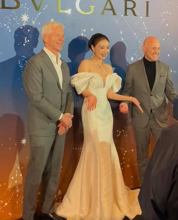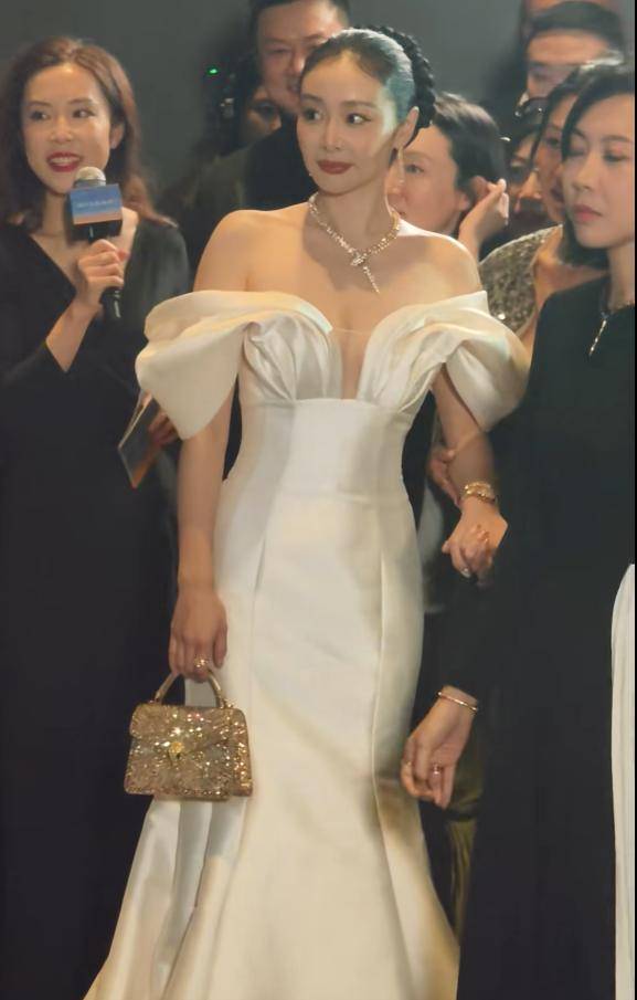 出席活动当天,高叶选择了一件深V领白色晚礼服。
