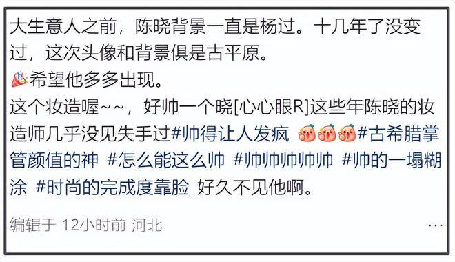 退一万步讲,即便陈晓有了新恋情,也是可以理解的。他和陈妍希已经离婚了,有追求新幸福的自由。事实上,陈晓也确实想要做出一些改变了。