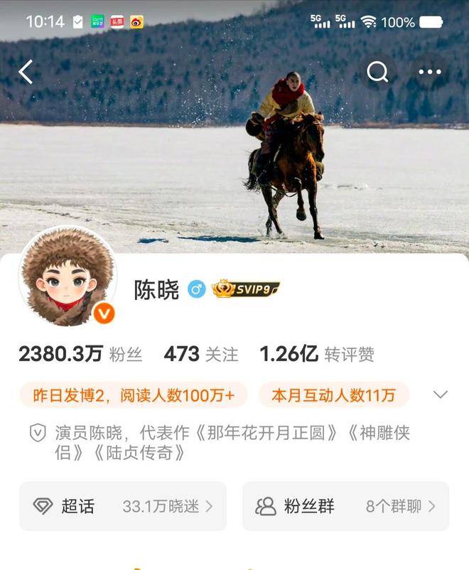 有网友发现陈晓在《大生意人》宣传过后,将微博背景改成了《大生意人》里的剧照,头像也变成了角色的Q版。而在此之前他已经用了十几年杨过的剧照为头像。要知道《神雕侠侣》可是陈晓陈妍希的定情之作,他换掉头像也被指是想要做出一些改变。