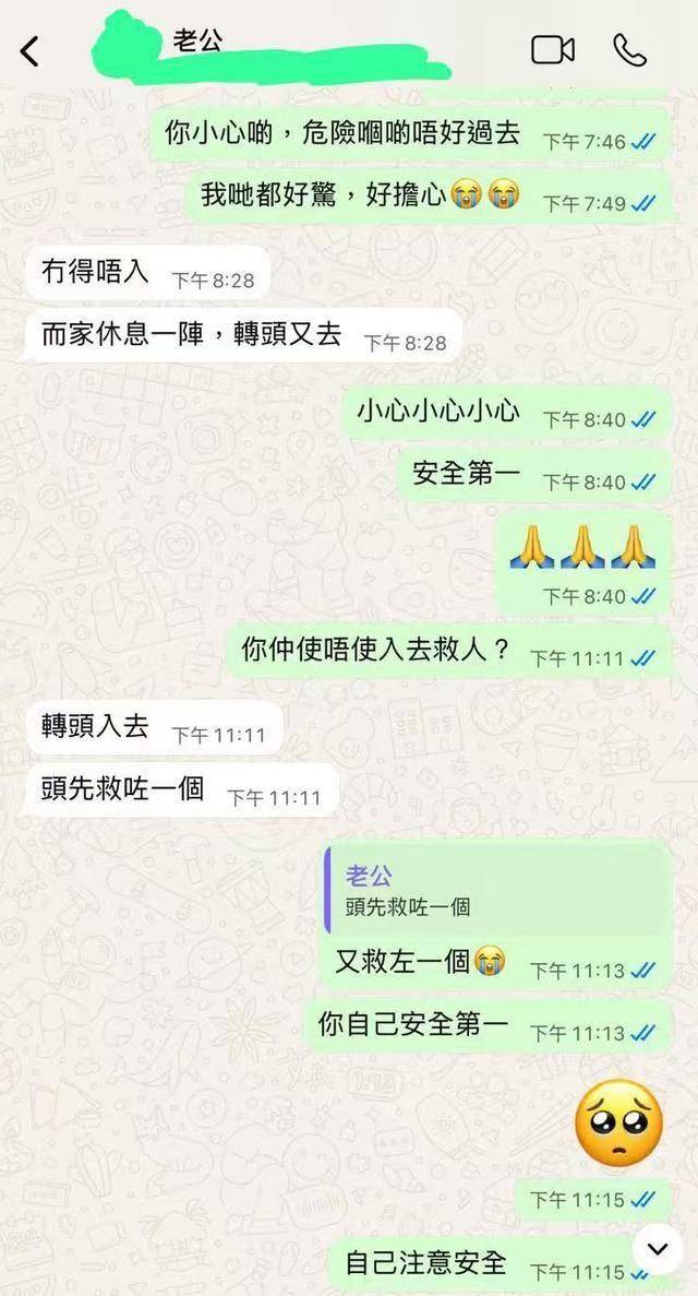 有家属要求消防员丈夫不要去太危险的地方,而消防员仅回复一句“不能不进去,我休息一会儿,等会再去”,而他也成功将一名居民救出。