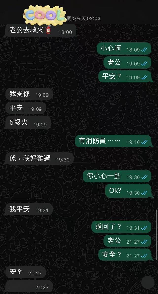 他在26日下午3点半参与救火行动,突然失联半小时,被发现躺在首先起火的大厦“宏昌阁”电梯前空地,脸部被烧伤,送到医院后证实死亡。