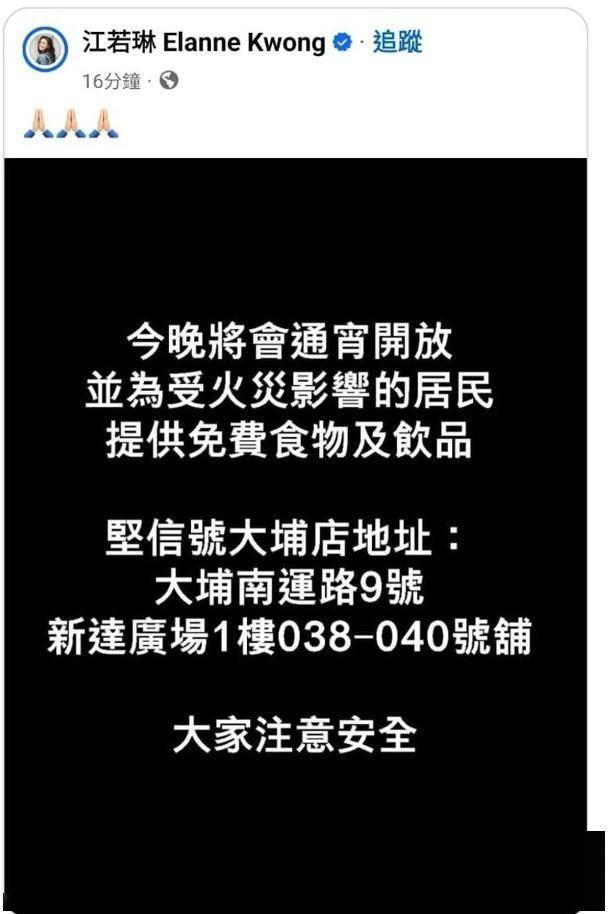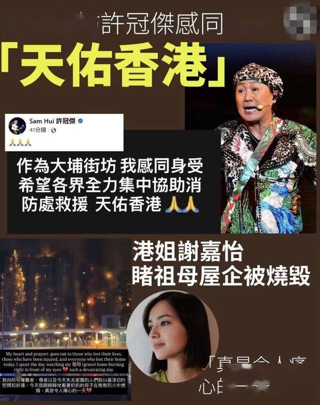 这一场大火牵动着大湾区人民的心,香港艺人都坐不住了,纷纷转发相关的帮助信息,并为消防员加油。