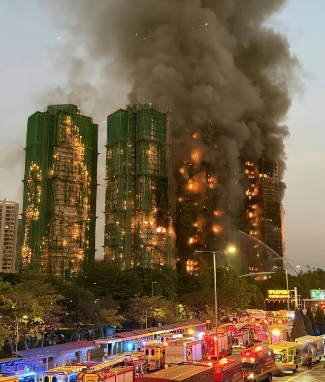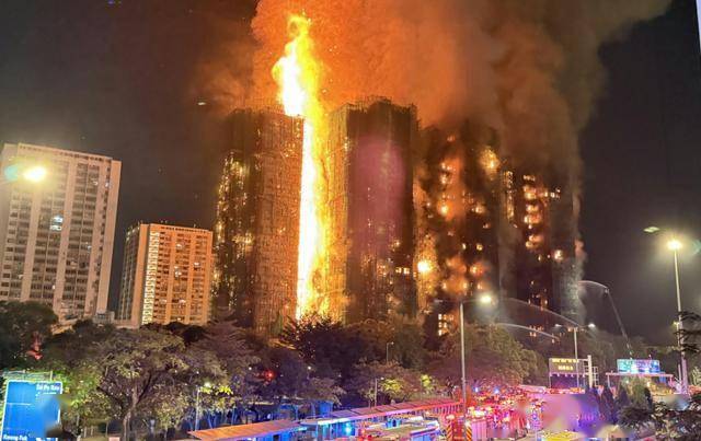 11月26日下午3点左右,香港大埔区宏福苑小区一栋大厦“宏昌阁”发生火警,火势极速蔓延至邻近的大厦,一共7栋大厦卷入熊熊烈火,仅剩一栋没有波及。