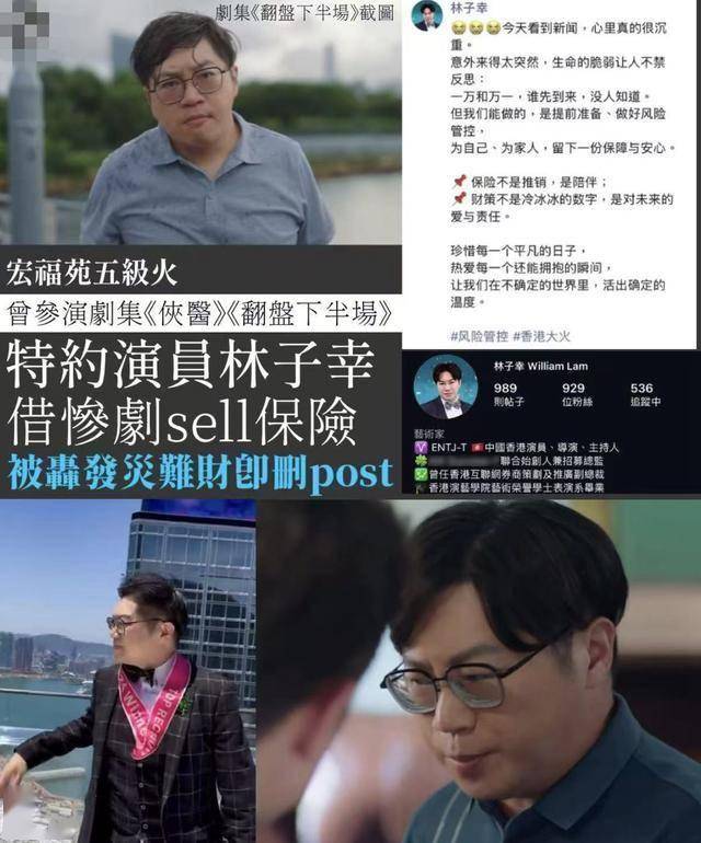 TVB一位特约演员于火灾发生期间,利用大众的恐惧,在朋友圈销售保险。
