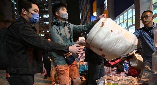 香港市民纷纷购买物资,包括被子、枕头、充电宝、饮用水等生活用品,自发送到政府安排的受灾人员安置点。