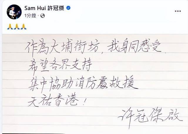 其中,资深歌手许冠杰发手写信,希望大家协助救援,原来他也居住在大埔区。