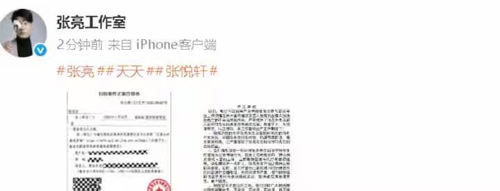 张亮工作室也提交了严正声明,表示网络流传张亮先生以及张悦轩先生的不实言论,均属恶意捏造,好无事实依据,且已经严重的影响了张亮和张悦轩的合法权益。
