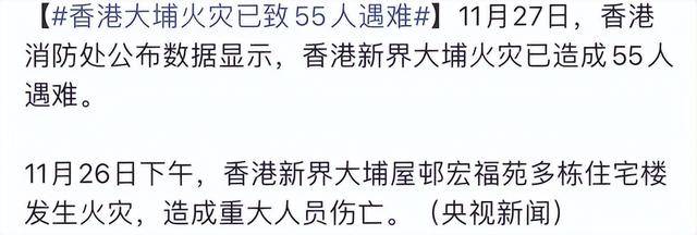 另外,据央广网最新报道,香港新界大埔火灾已造成55人遇难,数百人失联。相信很多网民看后都非常难过,让我们一起为受灾的同胞及救火的逆行者们祈祷!愿他们都能够平平安安。