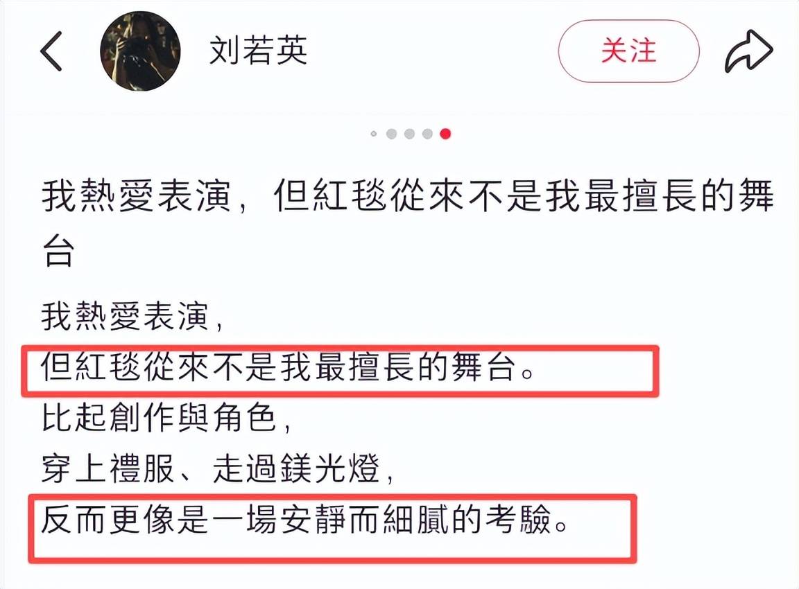 当然,刘若英的状态可能并不是最重要的,正如她所说,她热爱的是表演,而不是走红毯。