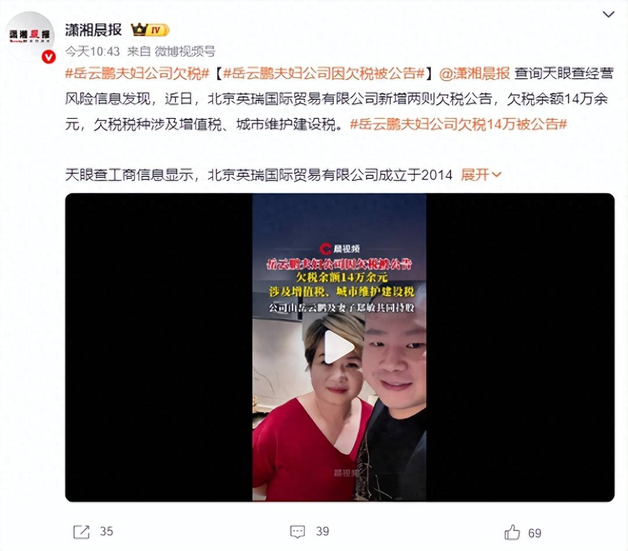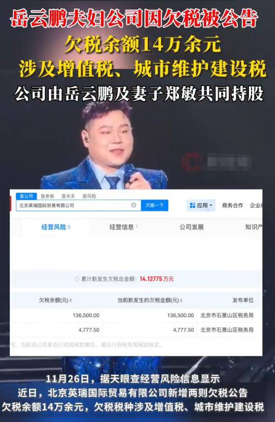 近日相声演员岳云鹏夫妇欠税14万爆出后瞬间登上热搜。 不少网友看到后纷纷加入热议中,大家都担心这位草根出身的明星塌房。··1·1··&mid