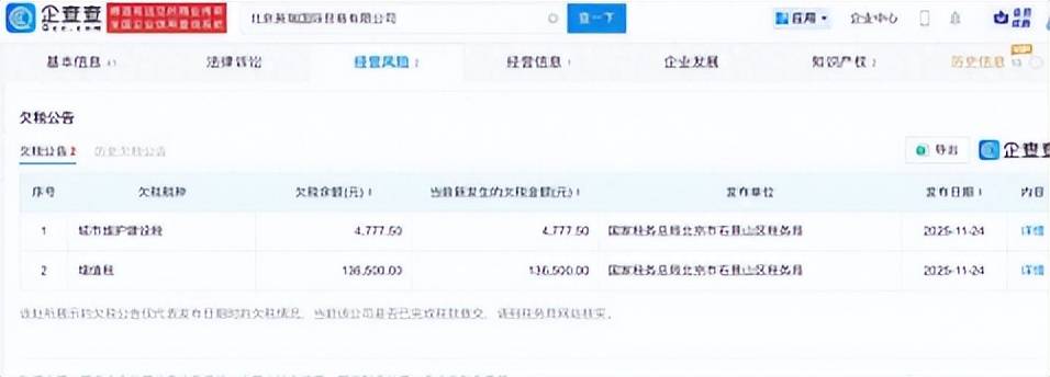 近日他们被官网发布了两条欠税公告,总计欠缴金额达到14多万。