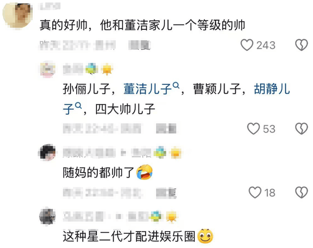 除了等等、顶顶外,曹颖儿子王子还有胡静儿子牛魔王都是被网友夸赞颜值很高的星二代,有网友就称他们是圈内四大帅儿子,直言只有这种星二代才配进娱乐圈。