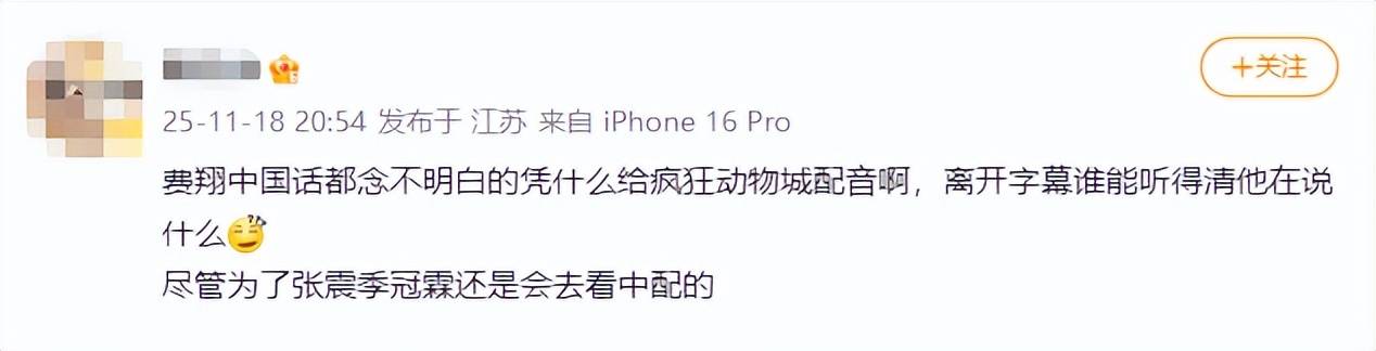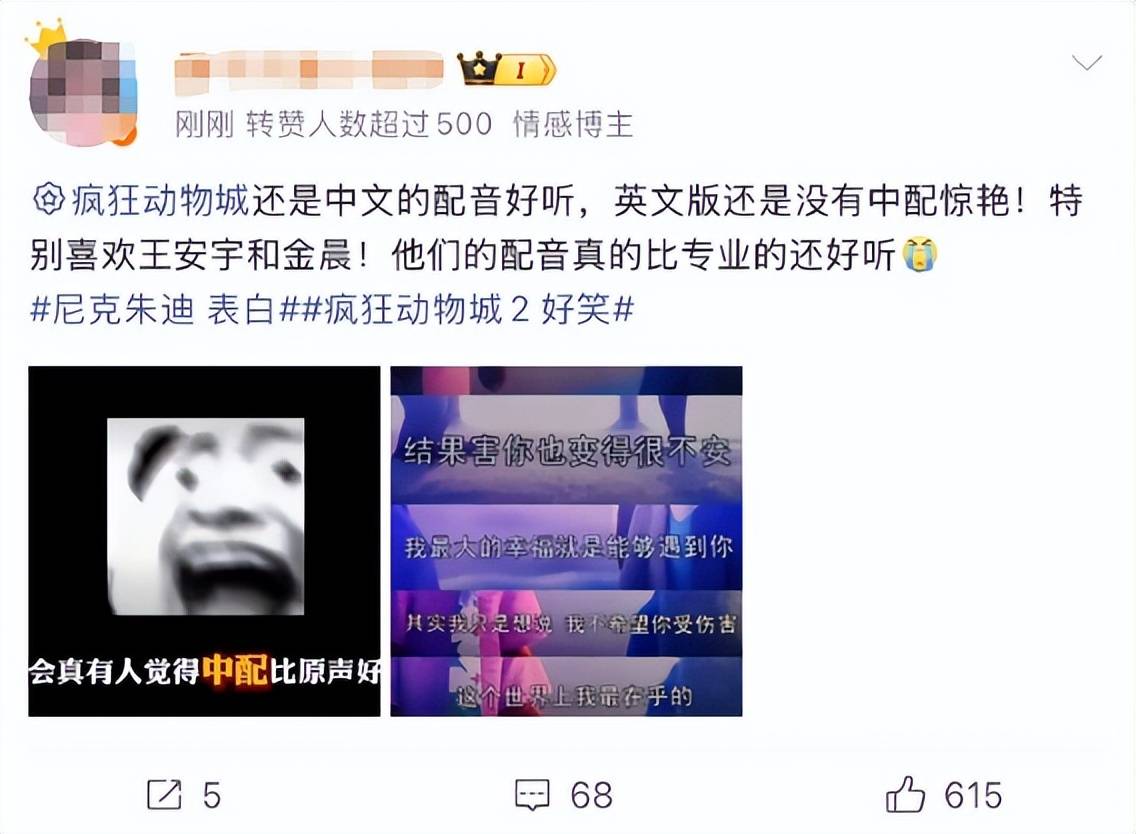 光是动画配音这事儿网上快闹了大半个月。《疯狂动物城》算是大烫门,火爆的厉害。现在好了,观众悬着的心果然是完了。因为电影里费翔的普通话真的模糊的离谱。网友直呼这是含
