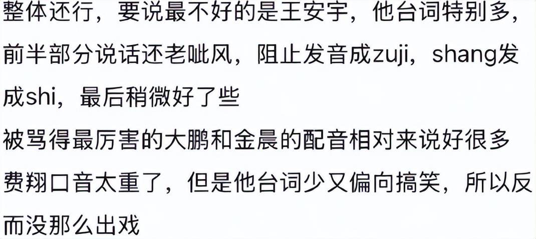 对比之下,金晨和大鹏的配音情况就稳多了。
