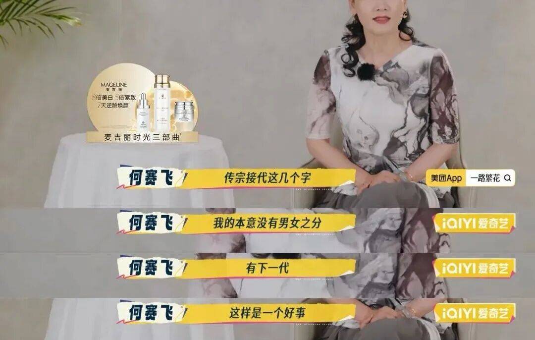 但何赛飞立马化身互联网嘴替,问了一个很多人都不敢问的题目:“大姐,大镜头扣你(脸)这,皱纹怎么办?”