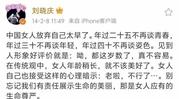 刘晓庆则一面理解,一面鼓励:这是你个人的私事,你的15岁18岁25岁都只有一次!为什么要听他们的?别人怎么看你,关他们什么事!