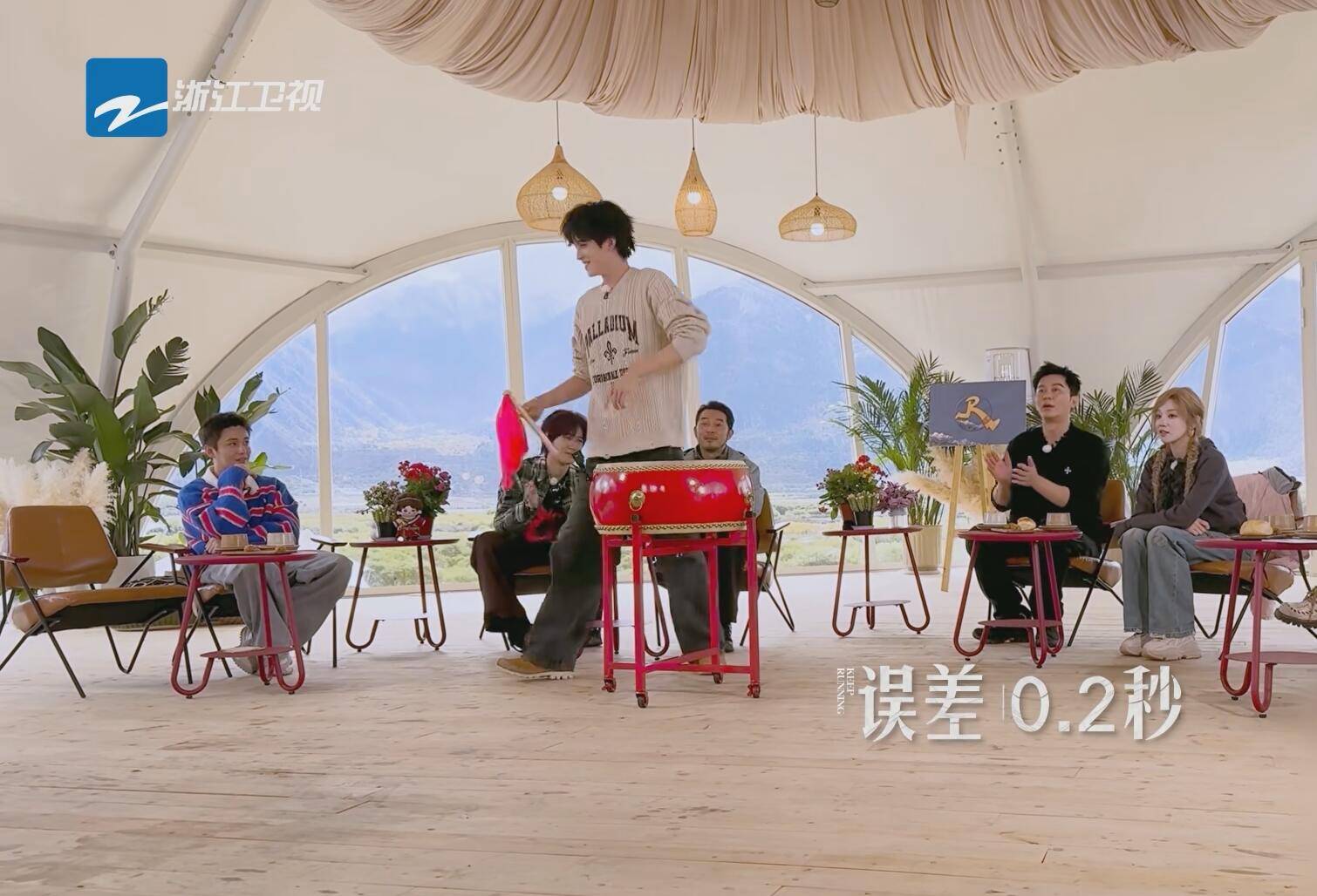 歌曲是大家非常熟悉的《青藏高原》,只是节目组把歌曲的一部分内容静音了,挑战的成员需要心里打节奏去卡点,最终敲鼓确认,看谁最精准。